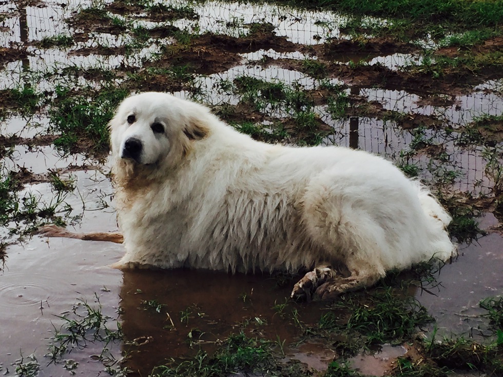 In May of 2014 I was contacted to come see a female GP in Denton, TX. She wasn't even on our radar. My list of interested dogs never even considered her but the TGPR coordinator asked that we at least come see this beauty. I was hesitant but as soon as we met I knew she was for us! She completely ignored me, she was going to be my birthday present and was a complete snob, lol. We took her home that evening. We were told that she went through extensive surgeries on her back legs so she couldn't go for long walks or jump onto the furniture. Any additional medical needs did not scare us. It took about a month but after a long hard rain her personality finally showed through. She happily laid in the mud for her photo op confident she was a super star.