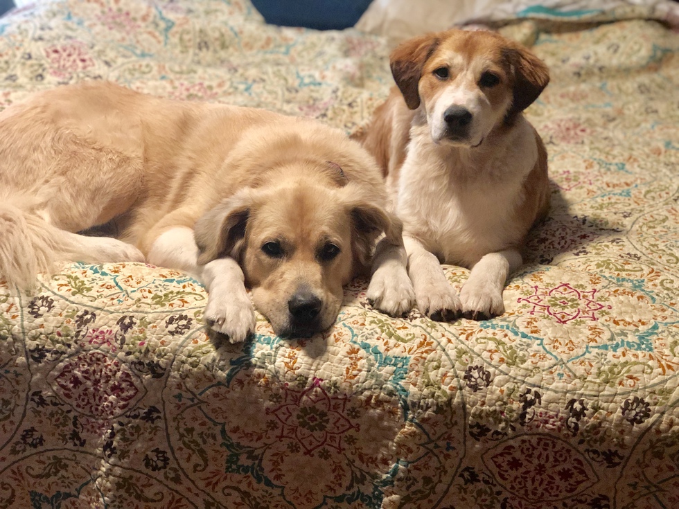 Buckley was being given away. Her momma fell in love and adopted her when she was 6-8 weeks old. Indie (previously Nova) was part of the Junk Yard Litter at Texas Great Pyrenees Rescue. Buckley has a new mini-me and Indie has a lot to learn from her new big sister.