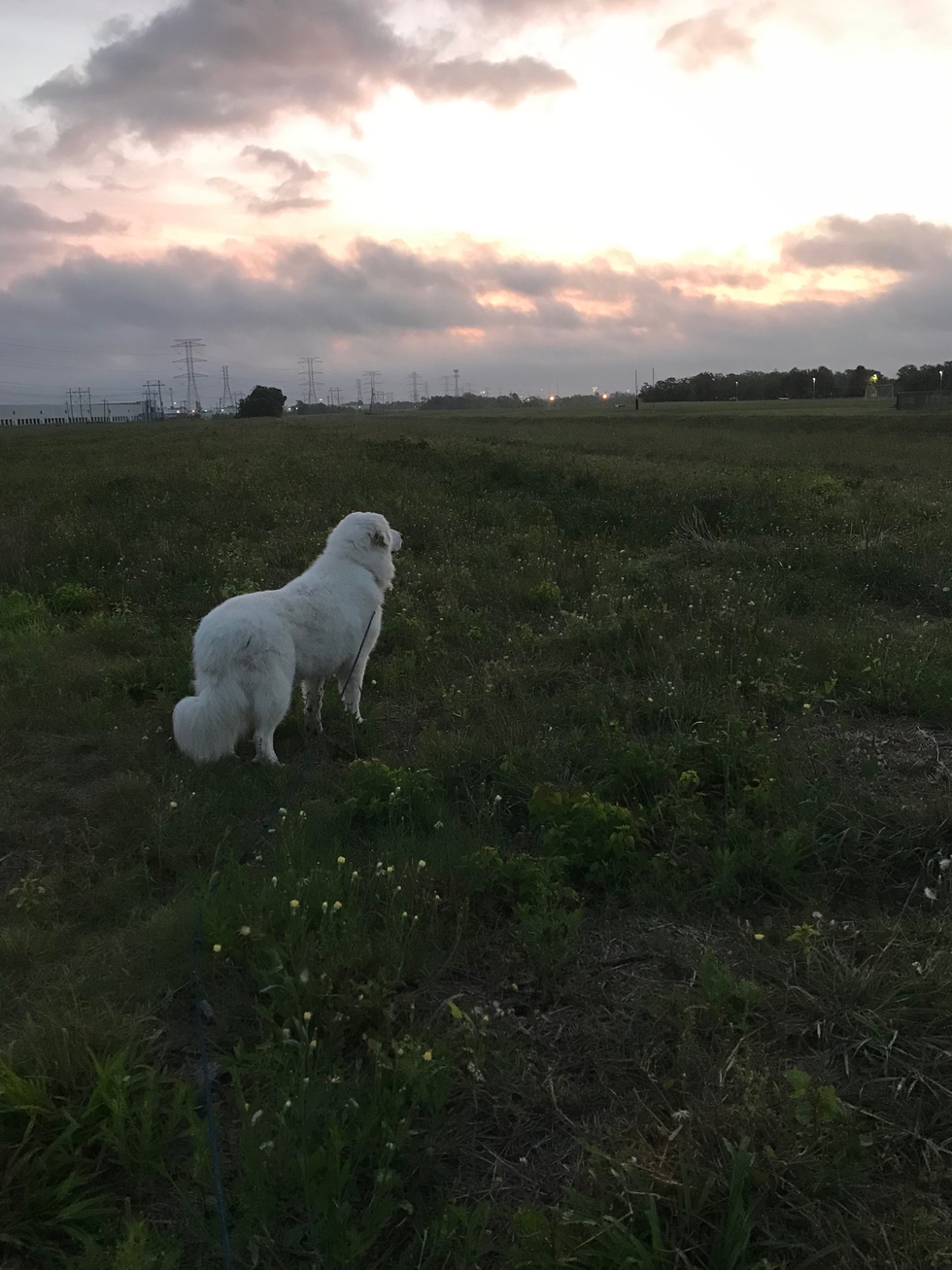 We adopted Sydney in March of 2019. Sydney's story and photo on the TxGPR website definitely prompted me to do the application. She has brought nothing but light and wholeness into our home. She is loyal, generous, funny, and noble. This picture was from our first morning walk. I almost burst with joy and pride standing near her.