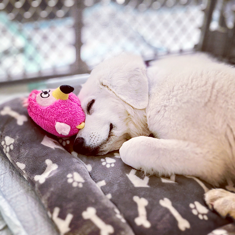 This was Bella's first day with us after her adoption and we had taken a long road trip to reach home. Being tightly packed into a car with unfamiliar people for several hours must have been a trial. Trying to be brave but scared and tired I'm sure, she took comfort by sleeping against the toy that smelled the most of her lost littermates. Then she awoke, bright eyed, mischievous and full of enthusiasm to start her new life with us. We are so blessed to be her new family.