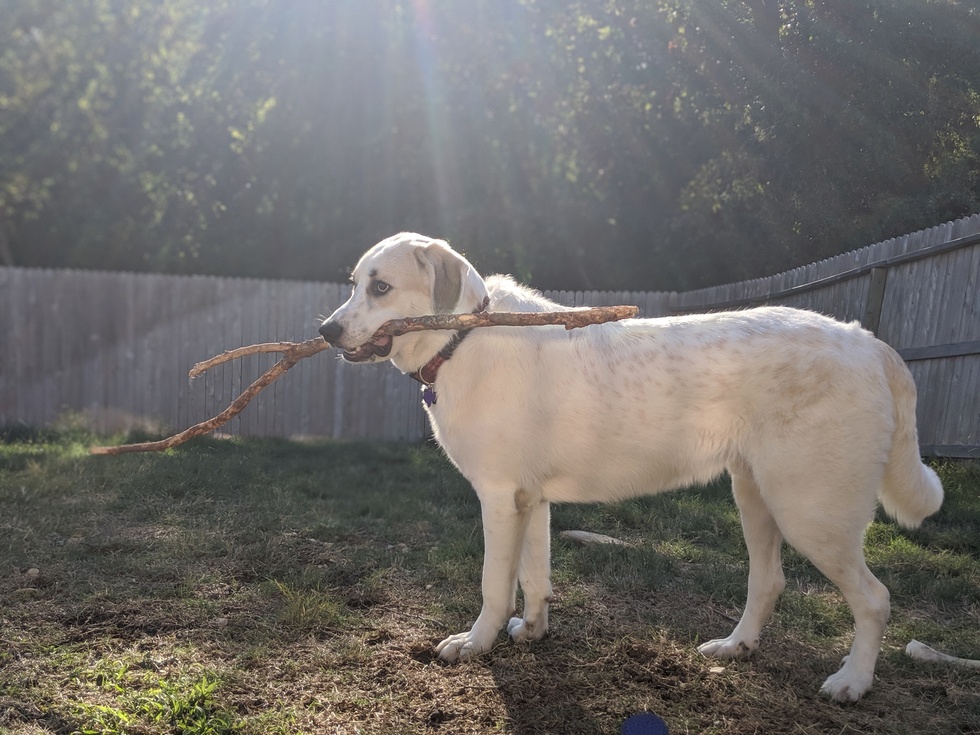 He's been a solid household guardian ever since, digging holes and hoarding sticks, enjoying the air conditioning and the couch. He's the most curious dog I've ever known, and I'm so glad we took him home that day!