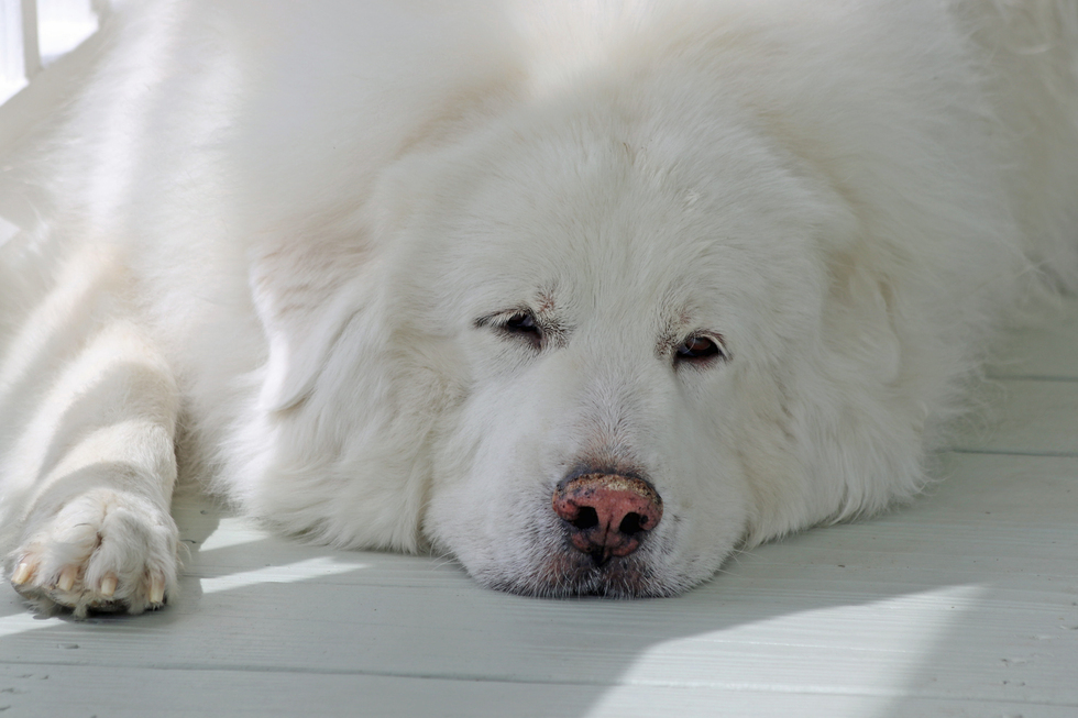 Ellie is actually our daughter's dog. She adopted her between her sophomore and junior year at Texas Tech. She loves to dig, counter surf and go for rides in the golf cart. She is the Pyr that got us to go on and adopt our two.