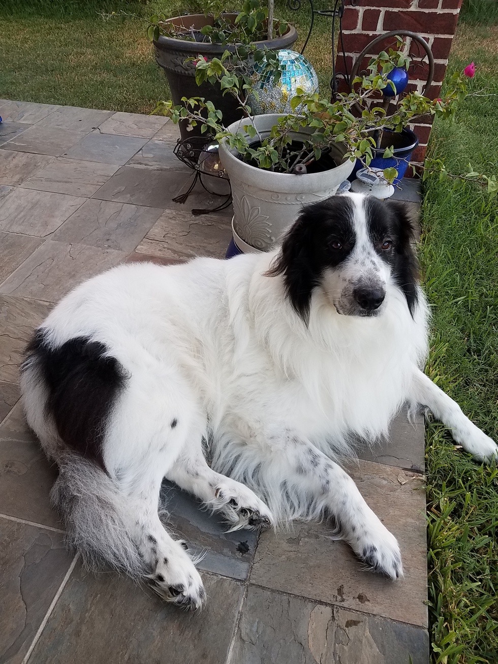 My name is Angus. My human mom says that I’m a handsome gentle giant (weighing in at 105 pounds now) with a sweet soul. I just love to have my coat brushed and cuddle with my family. Mom says that I’m a fierce family protector with a deep bass-baritone bark, but that I also think I’m really just a small lap dog. My family found me in 2018. Back then I was in a sad state of health, running along the feeder road of Interstate 45 North of Houston. After several long Vet visits to nurse me back into good health, and with no original owner coming forward to claim me, my new foster family officially added me to their pack. I just love this new pack! We get to take long walks, plus enjoy playtime with my Samoyed sister and Eskie little brother (who’s actually a lot older than me, but he’s a fourth of my size!). Now we all joyfully play together, getting to run off-leash within the safety of our own yard, that’s just like our own personal dog park!