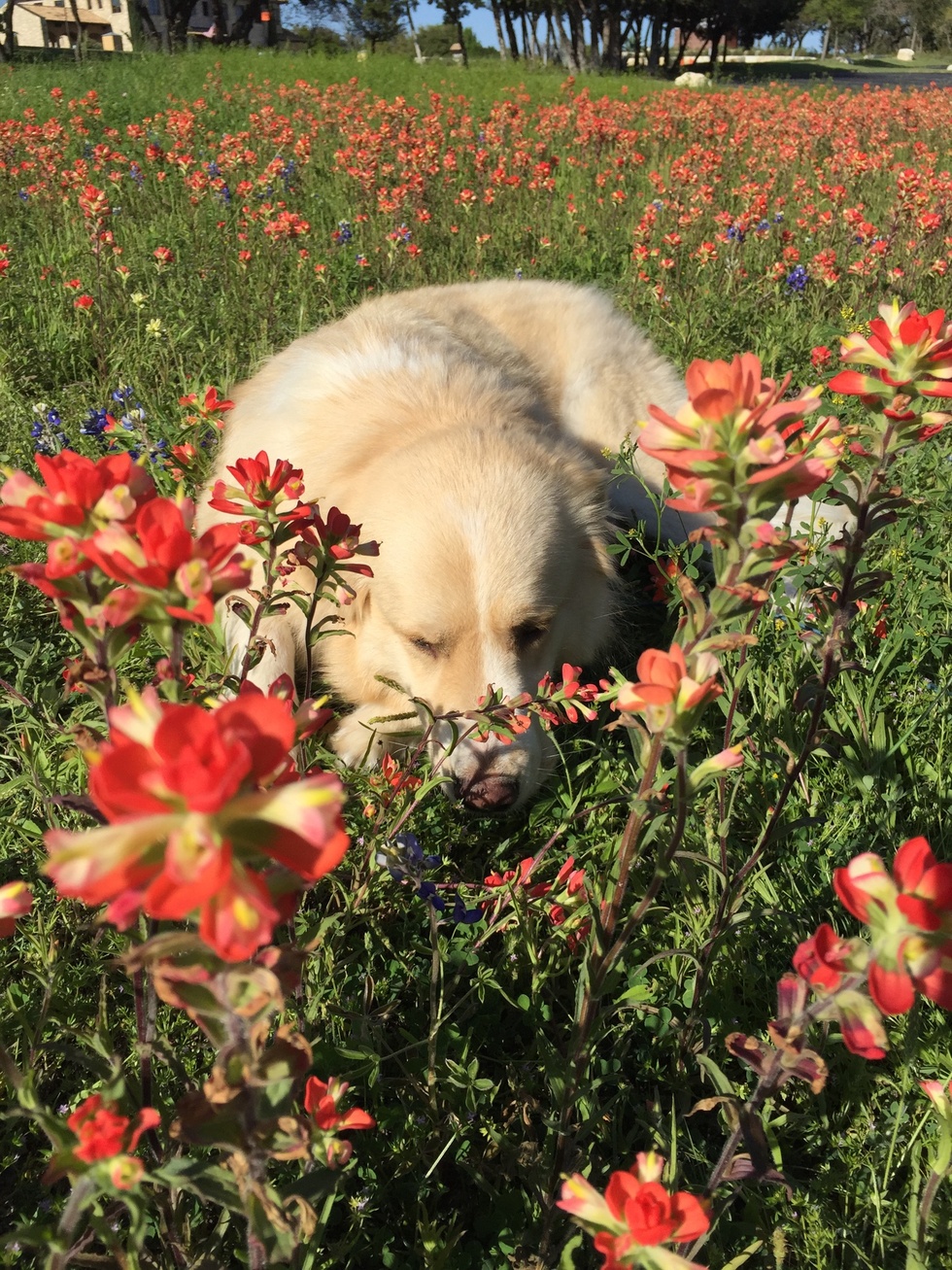 Ellie loves stopping to smell the flowers. She was adopted in 2013 from Austin Animal Center, and has since been living her best life along the Barton Springs Greenbelt and other hiking trails in the Austin area.