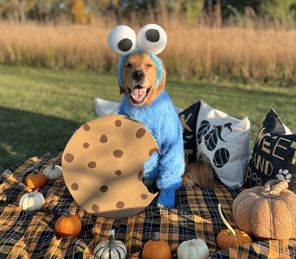 Burton is 4 year old Golden who loves EVERYONE! When he’s not being dressed up by his mom for photo shoots he loves carrying sticks or any nearby object around, swimming, and sleeping fully stretched out on his back on the couch!