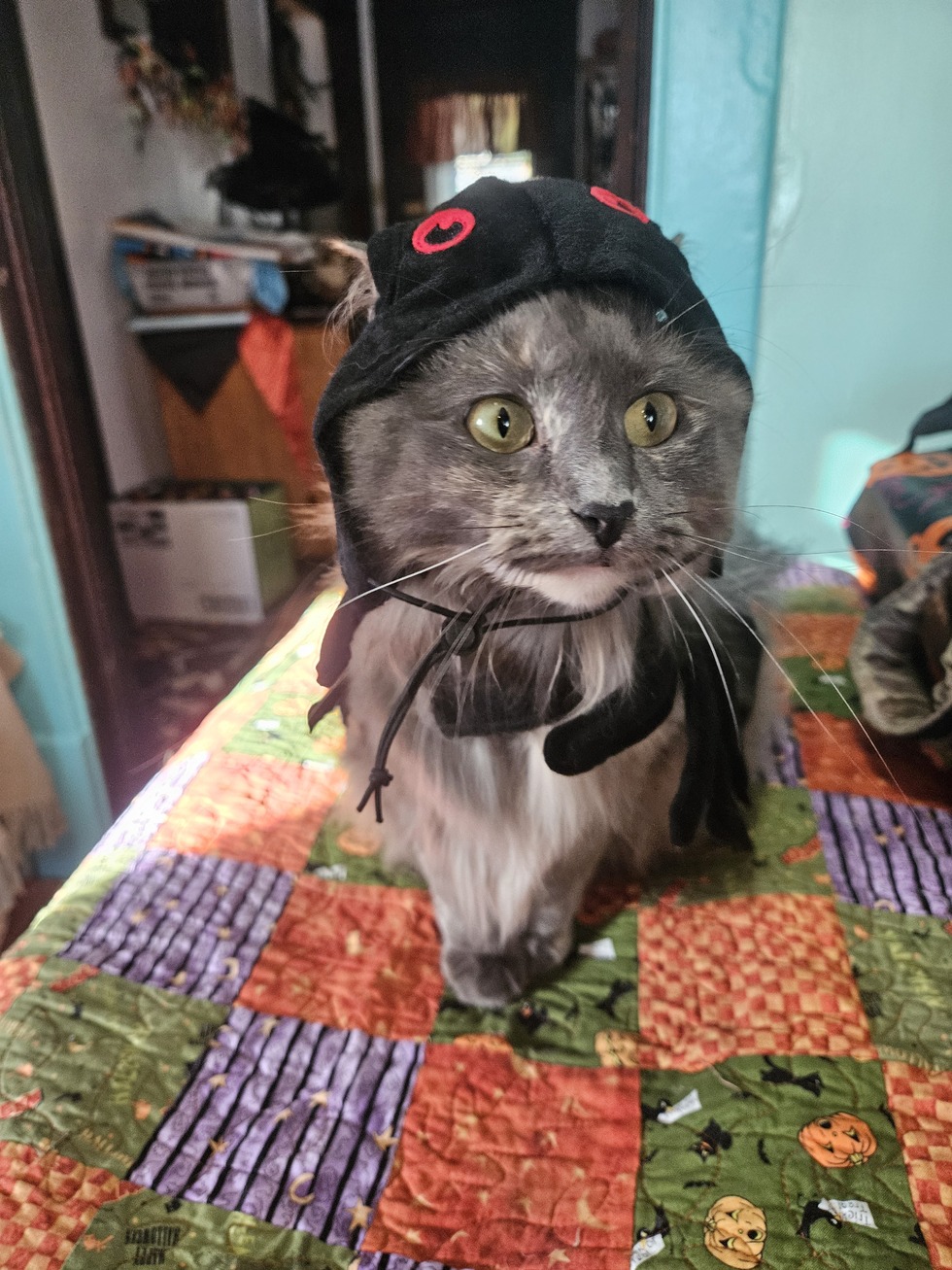 We found Kiki Turtle on the side of the road after vacationing in Wisconsin. She had been hit by a car and probably left for dead. Bitty Kitty brought her back to life. She had pulled tail syndrome and had an eight week recovery. We loved her right away, adopted her and brought her to her forever home. She is absolutely adorable with her little stub for a tail. She loves life!! She is a real survivor. She loves to play, cuddle and sit on her Catio porch and people watch. She is a great sport, walks on a leash and is up for any adventure. She is a great addition to our family.