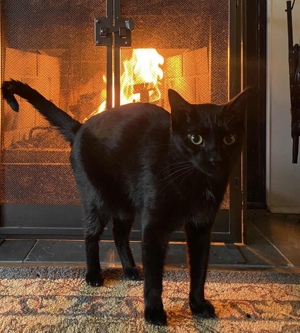 They briefly considered changing his name, but when they observed his slinky body and otter-like profile, they knew Otter was the perfect moniker. Otter spends his days happily by Tess’s side as she works from home, batting around crinkly toys, playing soccer with a tennis ball, and perching in his cat tree. He also enjoys crunching on Greenie treats. But he particularly makes an art of trying to sneak fries or chips off anyone’s plate he can get near enough to.