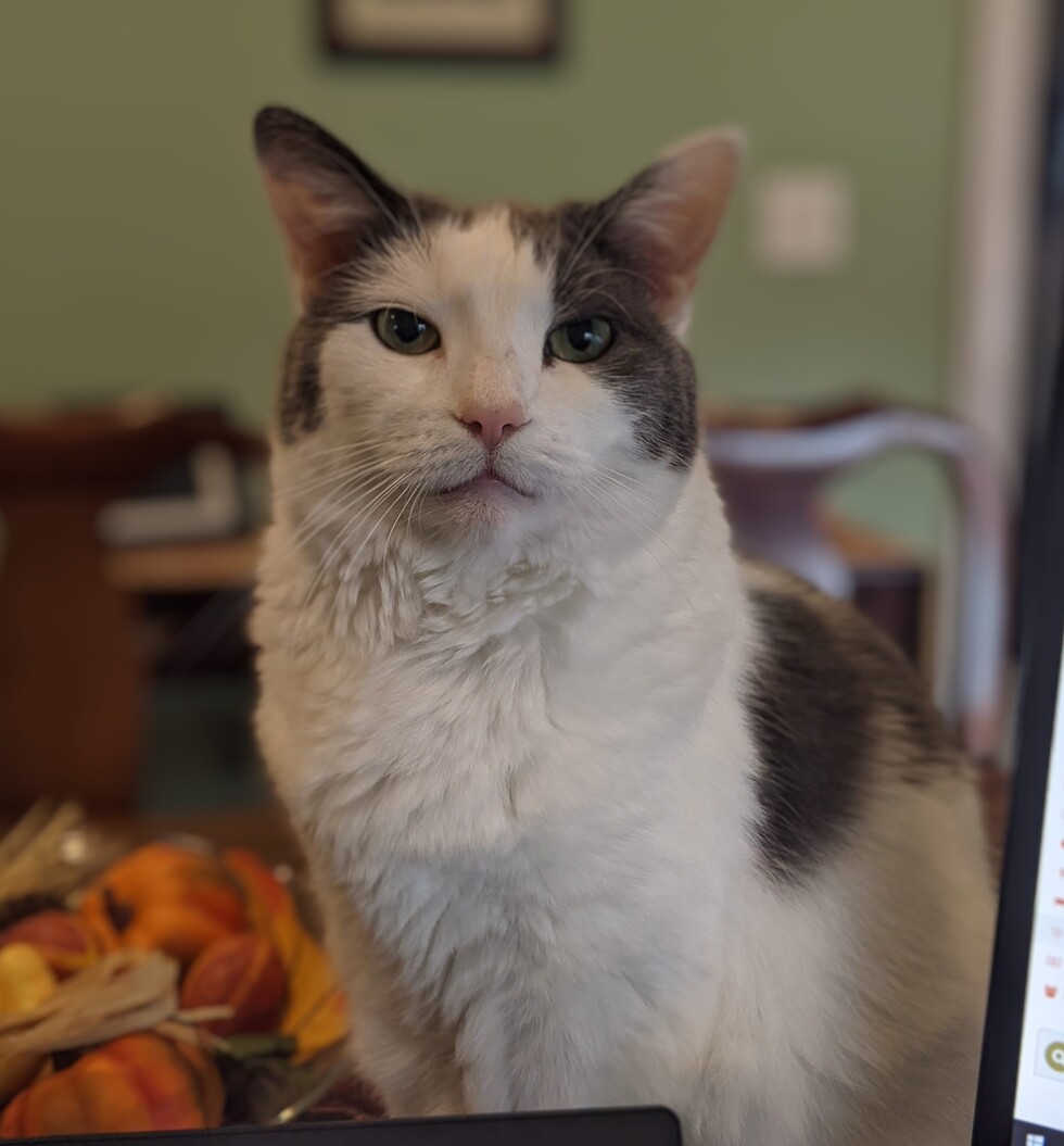 These days, Ginger’s passion is food, and is on the eternal quest to eat. Mary often has to remind her that she has just had snacks and doesn’t need any more quite so soon! She also loves to play hide and seek with her sister, and to intently watch the squirrels and birds through the bay window. Mary and Steve adore their feline children and couldn’t imagine life without them.