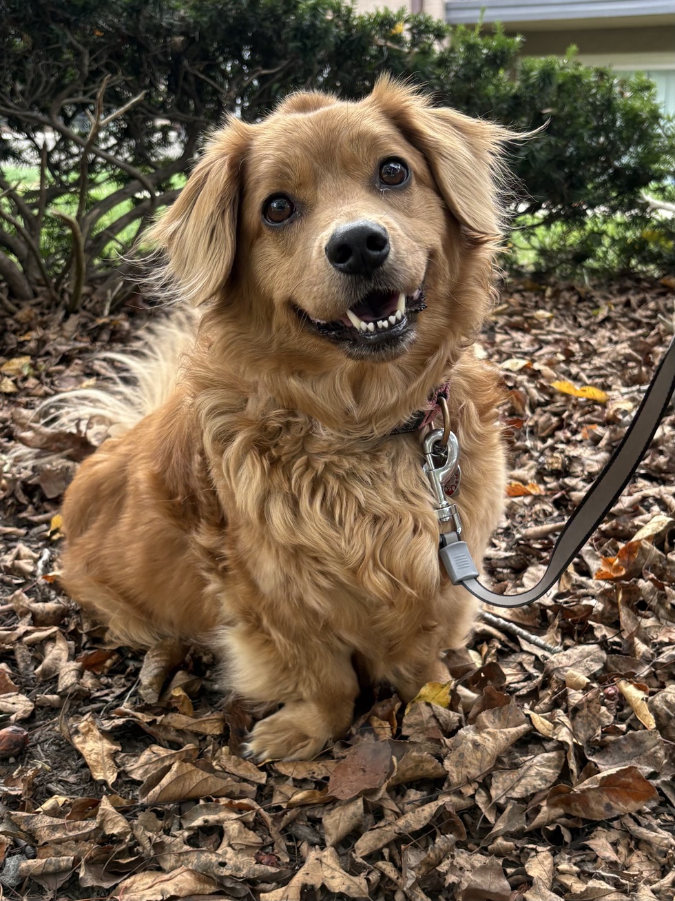 Meet Rosie, we rescued her from Wags Rescue on June 10, 2018 at the approx age of 6 months old. She is a super cute combination of a long-haired golden retriever and a dachshund, with dwarfism. When we rescued her, we were told she was found on a military base in North Carolina under housing, alone and scared. After we adopted her she immediately fit right in with our family, giving lots of love to her rescued fur sister Zoey (from TheCrossings Animal Society), us and our kids. Our daughter was very young then and Rosie would hear the bus pull up to the house and sit by the glass door to greet her with tail wags and a toy. Over the past 7 years she has continuously provided love and support to our family and of course, lots of kisses. When her fur sister Zoey became ill, she spent countless hours by her side to comfort her, give lots of love and again provide lots of kisses. After Zoey‘s passing at 17 years of age, even though she was saddened herself, she immediately jumped into action to support our family and especially myself. It was almost as if she was saying don’t worry Mom it’ll be ok.