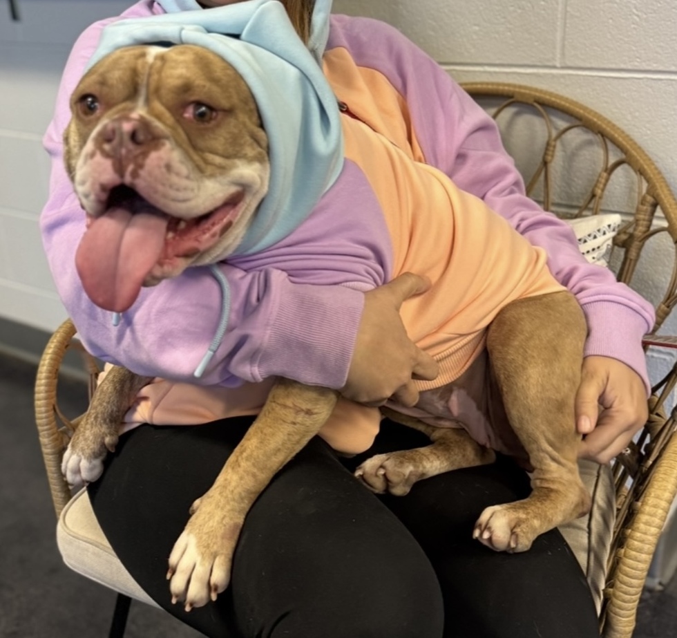 My names Squishy, but you can call me squish squish ,and I was found roaming the streets one night, after hurricane Helene by Thomasville humane society. I was scared and alone but they brought me in and showed me love, gave me food and helped me feel safe. My new mom came in one day, empty inside just like me, sat down and I rushed into her lap almost knocking her over. I just knew she was my human. We have been inseparable since. She feeds me shows me so much love and holds me all night while she snores and farts. It couldn’t be me making those noises at night. I am one happy dog and human owner now.