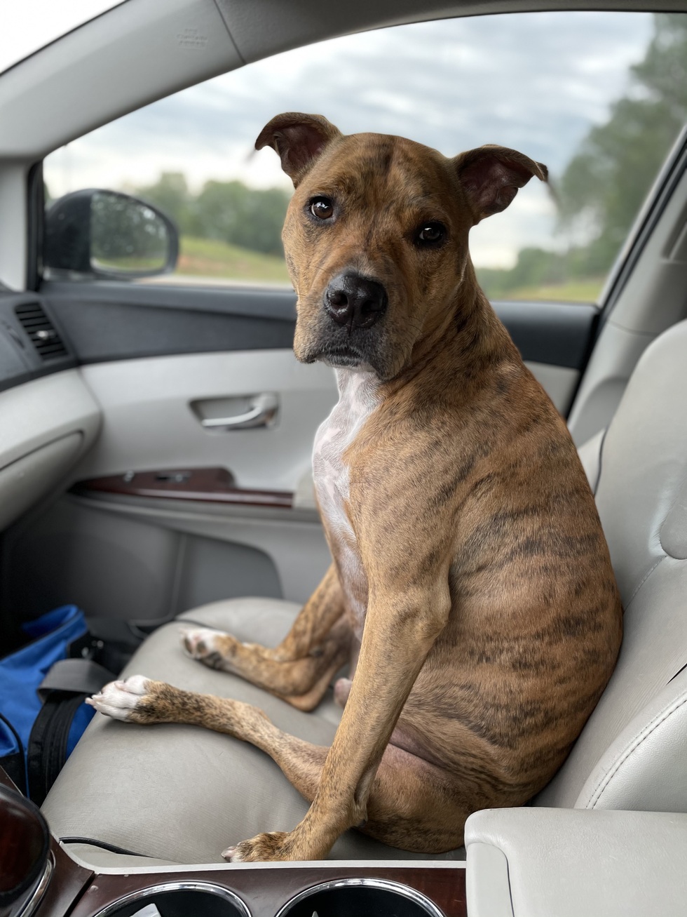 Rowan came into our lives one afternoon 8 years ago during what started out as just another shopping trip to Tractor Supply. There he was, a young pup walking himself on a leash around Tractor Supply while a volunteer with the Humane Society was unsuccessfully trying to keep him from loving on everyone who walked by! I scooped him up and the rest his history. He is the best boy for our family and as the picture shows, loves riding shot gun!