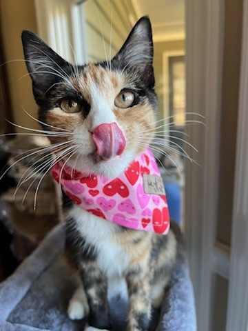 Pansy was rescued from Pebble Hill Plantation. She was found roaming the grounds, she was feral and wild, but after plenty of TLC, she is thriving. Pansy is named after Pansy Ireland Poe. She is full of spunk, and has a unique personality. She loves playing with dogs and her adopted sister, Cleo.