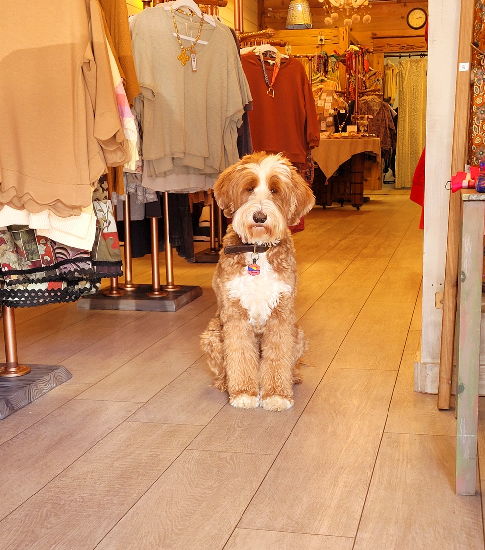 Tebow , AKA "Angel Boy" is an Australian Labradoodle, he has a very big job @ Willow Oak Couture as our official greeter and shop mascot. He is such a well behaved sweet boy. He loves car rides, hanging out at the shop working all the ladies for attention, walks in the woods and sitting on laps!