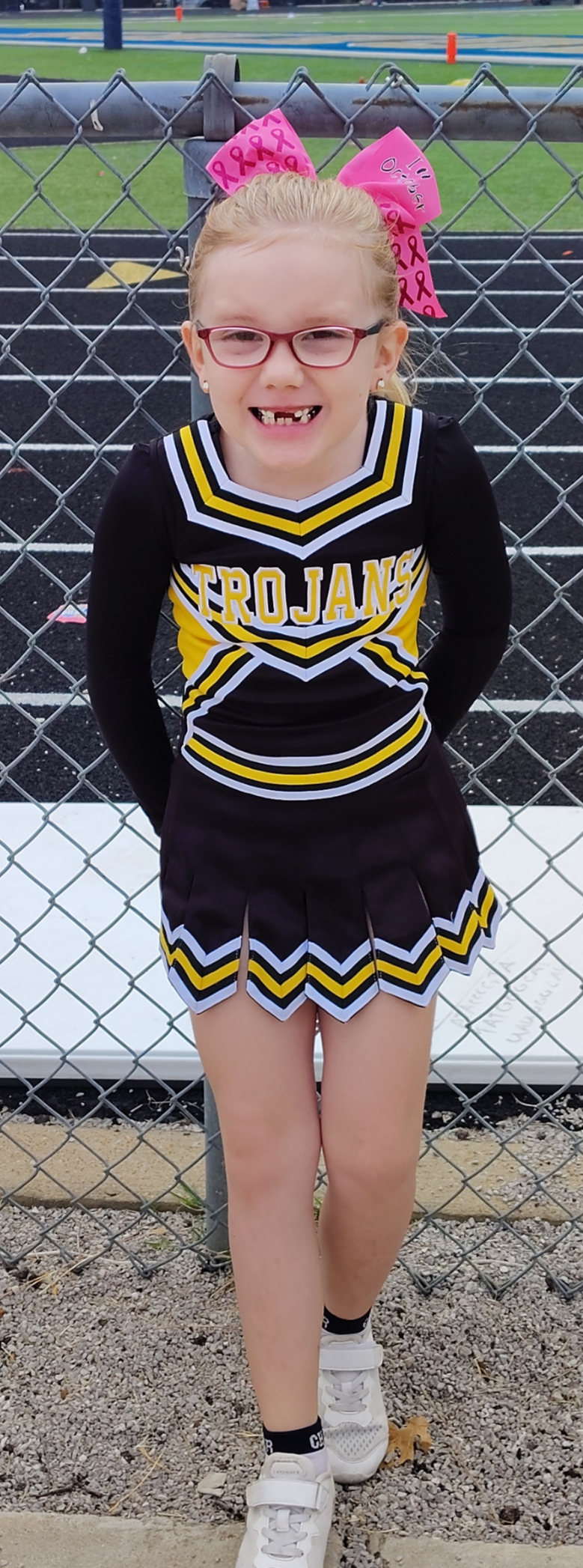 Bio/About MeHi, my name is Penelope, I am the most caring, funny and loving little girl. I absolutely love cheer. It has boosted my my confidence and my pushed me to not be so shy. I love everything about cheering. It is like having a second family. I love my coaches and my fellow teammates. I truly want to be a cheerleader when I grow up, I want to be a cheerleader for the Kansas City Chiefs one day, that is my goal and my dream. So please pick me for queen! Go Trojans!!