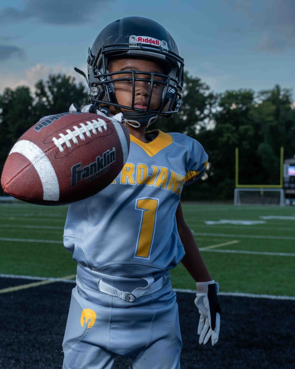 Playing football was scary at first now he LOVES the game of football 🏈 enjoys learning new plays and being with teammates.