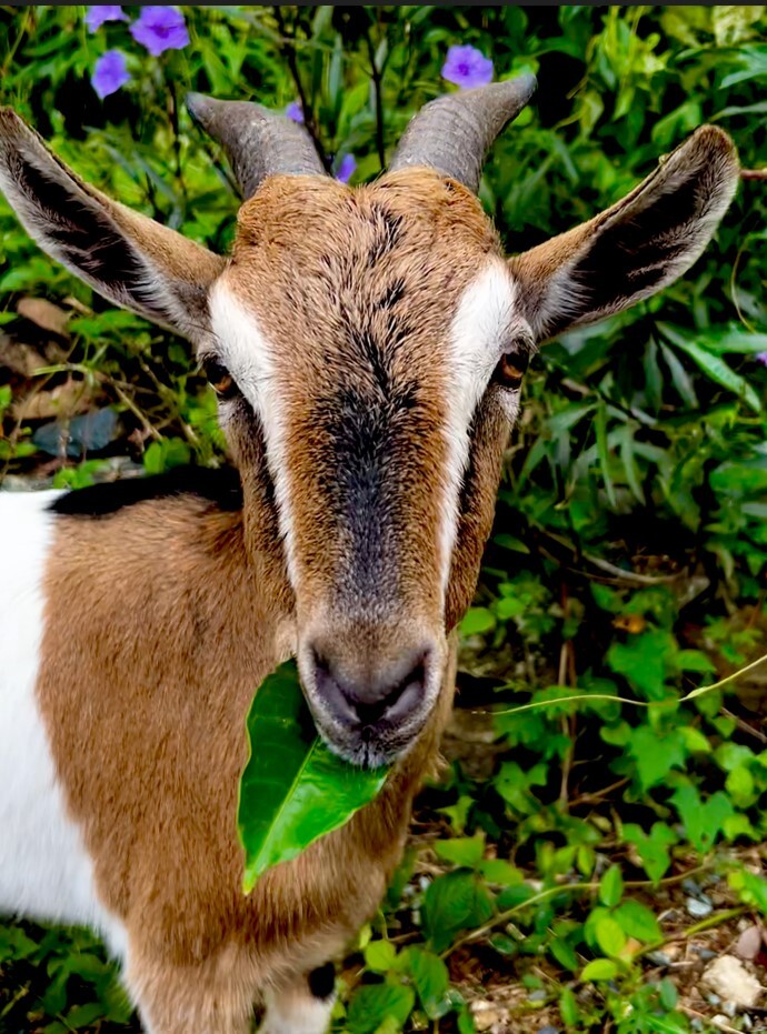 Coconut is from the Island of Hans Lollik, off the coast of St. Thomas, USVI. He found his way into a campsite as an orphaned baby. He was adopted and bottle fed and grew up to be a loving member of the family.