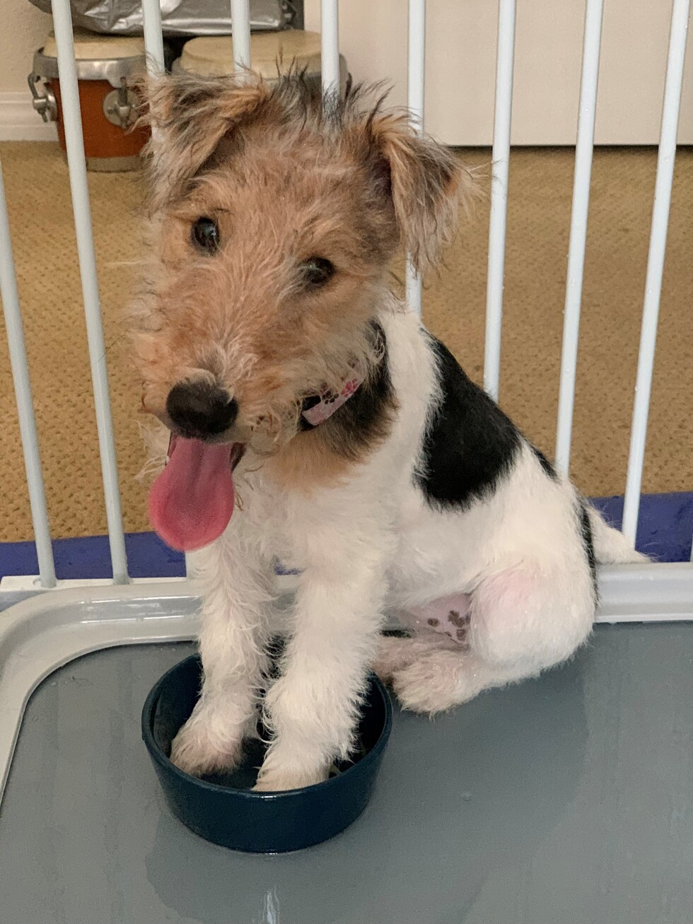 Pet's StoryThis is a photo of baby Ella, cooling herself off after a fast run outside. She is now 4.5 years old and still the same loving, mischievous Wire Fox Terrier she has always been - constantly training me when I should probably be training her. She brings joy, chaos, and endless laughter to my days, and I love her to pieces
