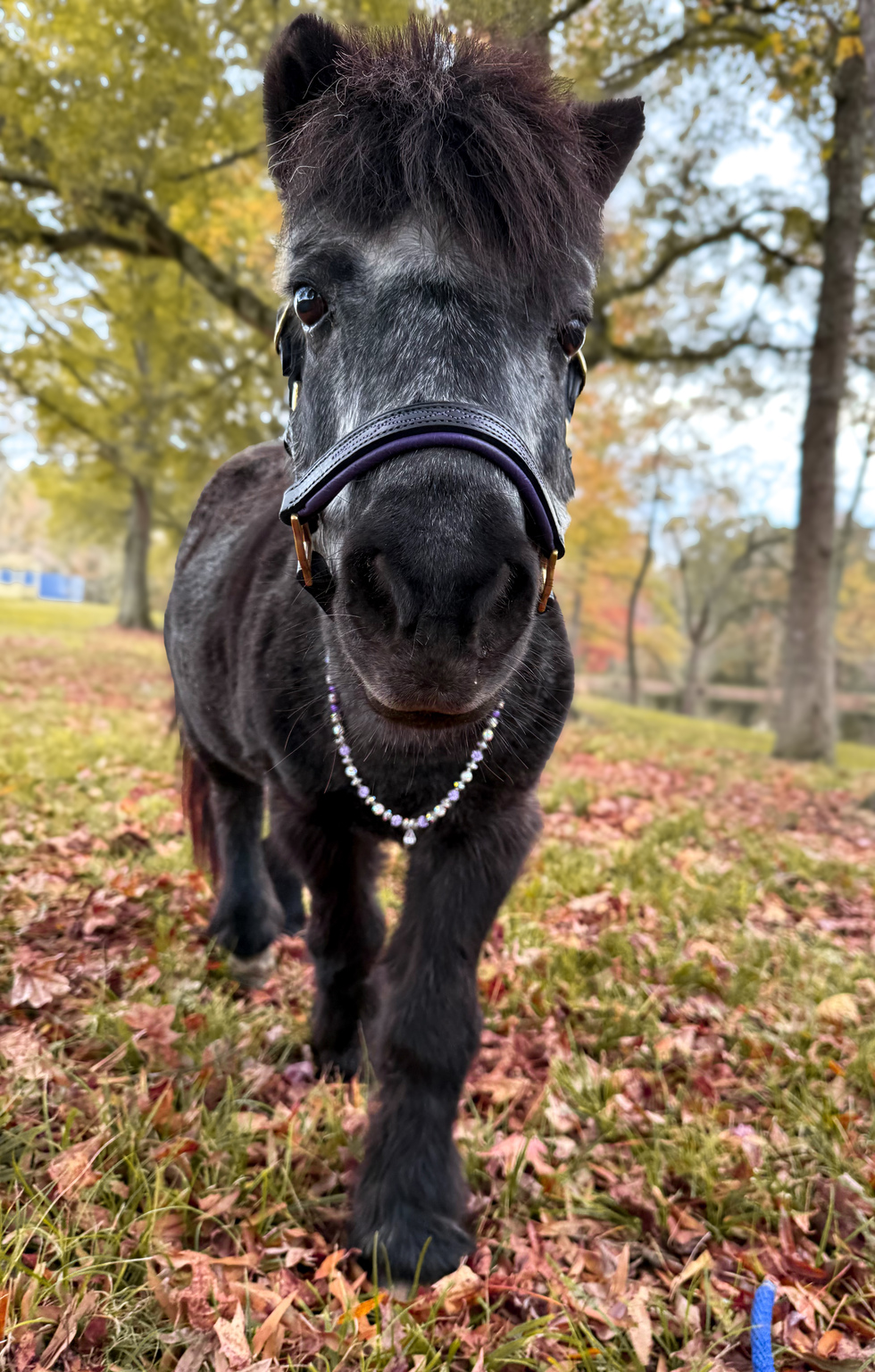 Pet's StoryMidnight Snack Attack aka “Middy” is a 21-year-old miniature horse who went from feral and forgotten to confident and cherished. Once neglected and untouchable, she chose her people carefully, forming a deep bond with me and my horse. Because of that trust, she was given to the one person who truly understood her. Now she lives her best life on her own farm, ruling the roost with attitude and authority. She’s spoiled, sassy, fashionable, and fully aware she’s in charge, despite being the smallest lady on the farm!