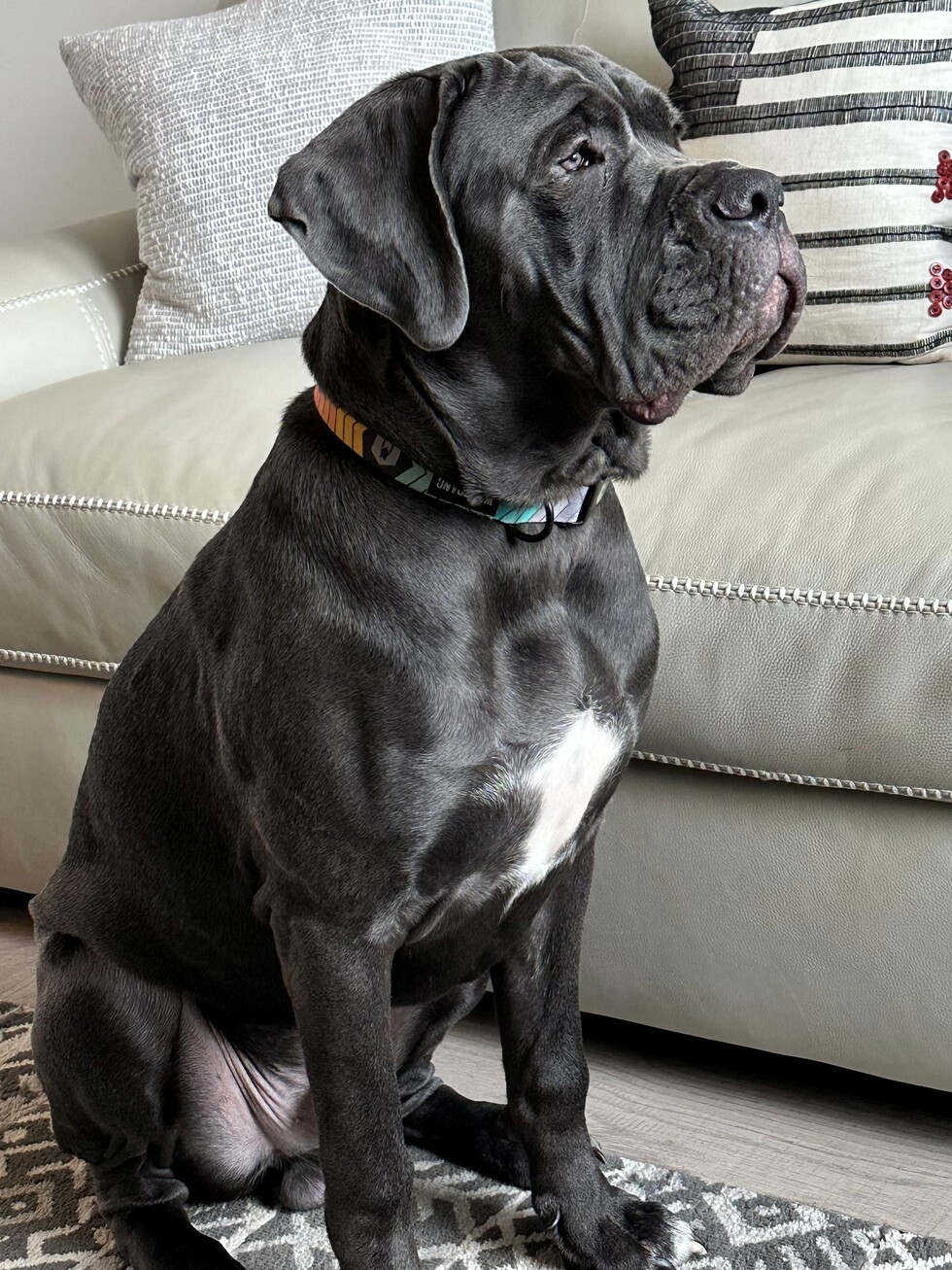 Pet's StoryLinkin (as in Linkin Park, the band) is the sweetest 140 lb. house hippo who wouldn't hurt a fly. He is an Italian Mastiff (Cane Corso) who serves as the office window watcher for all the passer-byers while I'm working (which is what he is doing in this photo). If he doesn't get his daily walk, he pouts with his lower lip exposed. He came into our house with two other dogs, who have since passed of old age. However, he had an extremely strong connection with our most senior dog Dottie. He's an old soul in a young dogs body. He communicates with his big nose and 'boops' things he doesn't like including the temperature and air flow of the floor heater. His personality and character is that of an old man. All he needs is a rocking chair, and he would be quite content!