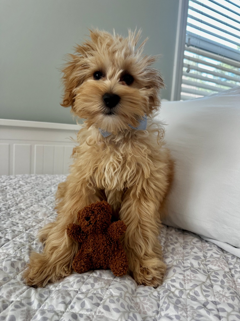 Pet's StoryA living breathing teddy bear, Apollo is fun-loving, extroverted, and just as cuddly as he looks. He’s a gentle, playful pup who never goes anywhere without his signature bow ties (he rotates them seasonally, of course). Being a Shitzhu-Poodle mix, Apollo's fluffy golden coat sets him apart from his breed.