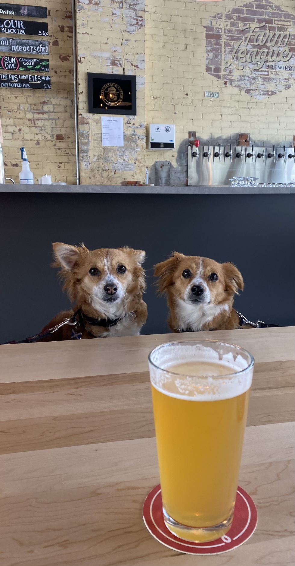Two mad Pom brothers who are always down for an after walk pint!