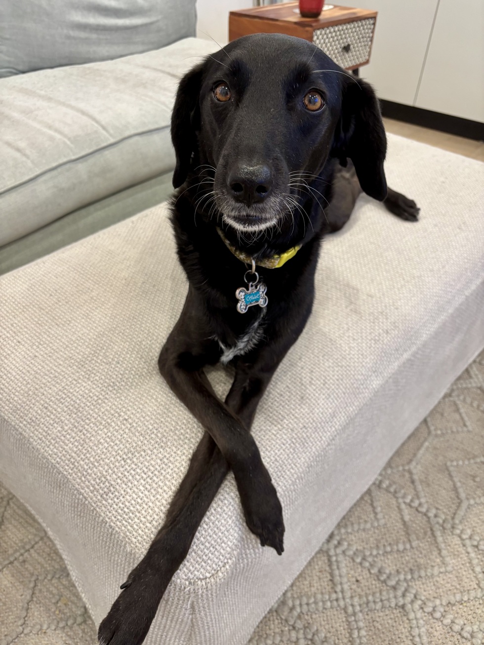 Calle is a rescue from Zihuatenejo Mexico. She is now 9 years old and is a very good girl. I named her Calle, pronounced Callie, which is the Spanish word for street, because she was a street dog for the first year of her life. Calle was shy at first but worked hard to be friendly. She is very gentle and loves all the Hoomans. Calle has pretty expressive brown eyes and is quite the polite girl, she crosses her from legs like a lady when she lies down. Calle would be a great spokesperson for beer because having a beer with friends is a friendly activity and she is very friendly.