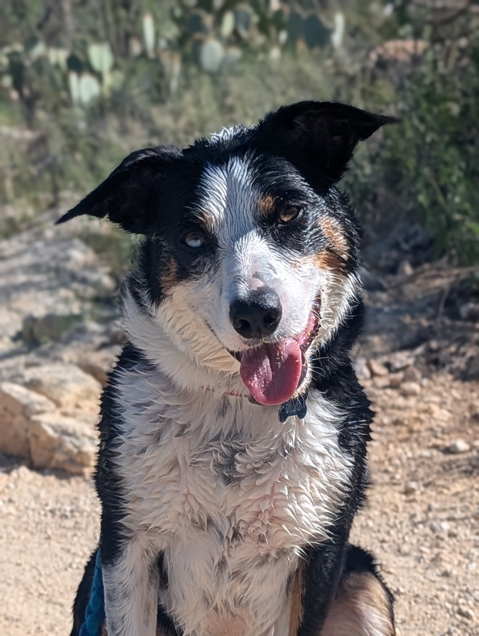 Blue is a 6 year old Border Collie living her best life in Tucson. She loves playing Toss and Fetch frisbee with her teammates on the Perro Loco Tucson Frisbee Team and herding cats (which, according to her - super easy!) She came to live with her mom after she was brought into the vet for a convenience euthanasia. She doesn't hold any grudges though, she's got bigger balls to chase. Now, instead of celebrating her birthday every year, her mom celebrates the day she survived her assassination attempt and came to live at her fur-ever home!
