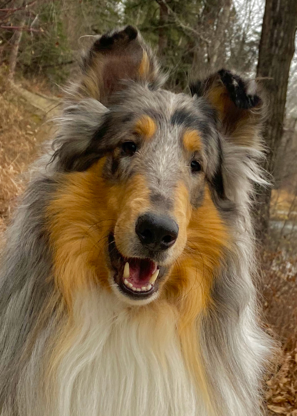 A somewhat throwback to the famous T.V. "Lassie" ...but with a twist of being a Blue Merle color. Many people he (we) meet say " I grew up with a rough collie!" so perhaps he will bring an enhanced smile to the beer consumers face :-) cheers!