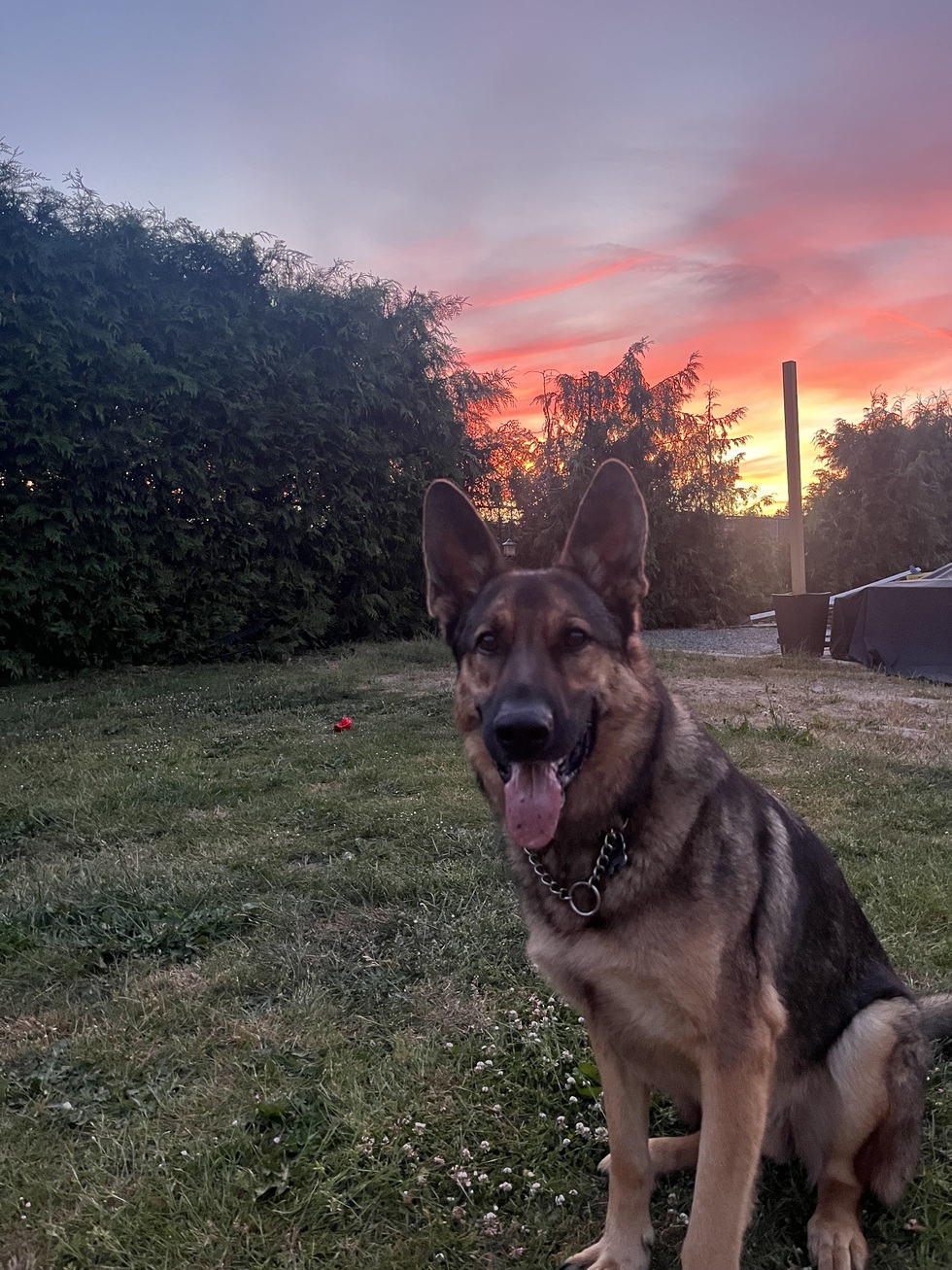 Harvey is a happy-go-lucky shepherd who loves to play with any dog he meets and cares for his pack with a goofy grin