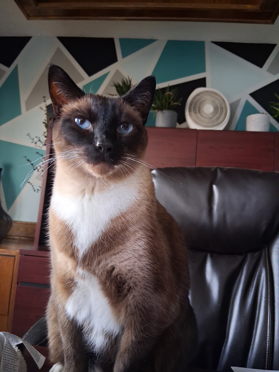 Beans is a feisty Siamese cat that loves her treats and naps.