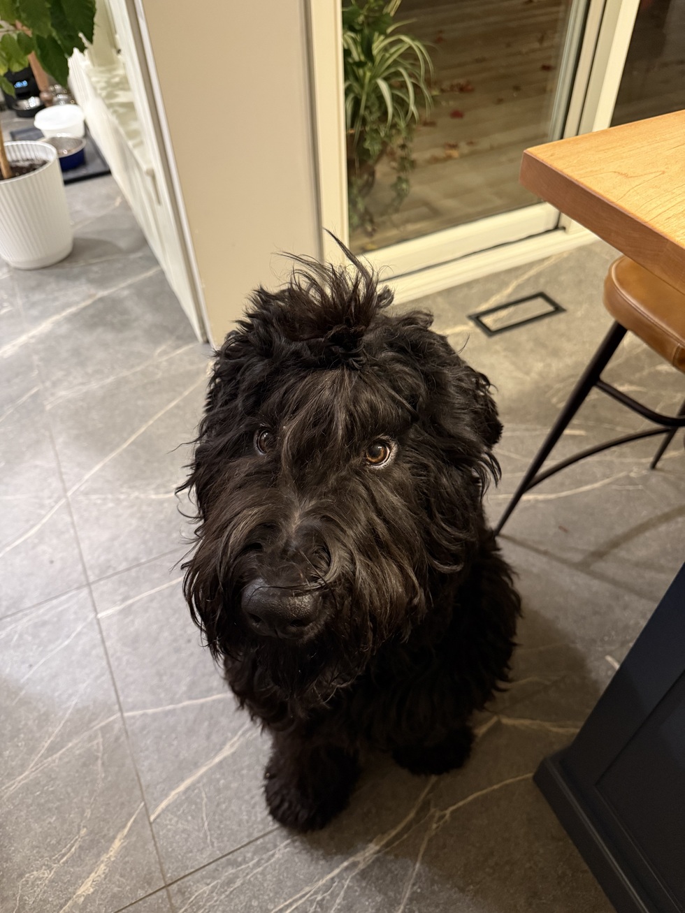 Katri is a Black Russian Terrier puppy - just 1 year old. She is like a human in a dog suit - funny, enthusiastic and super smart. She likes a good dark beer and is partial to peanut butter.