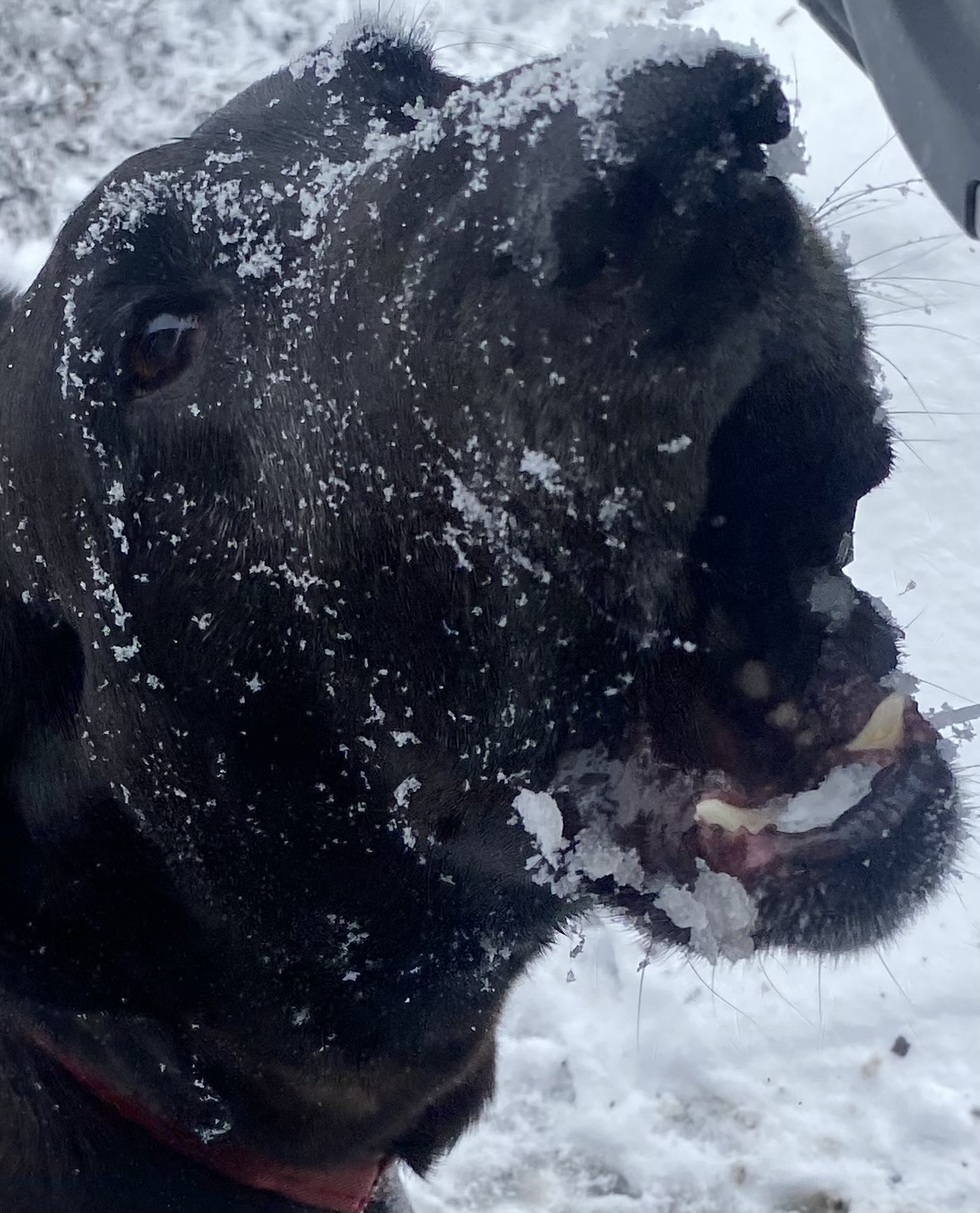 A picture tells 1000 words. Bella loves her chilling, snowball fights, and her cold beer!