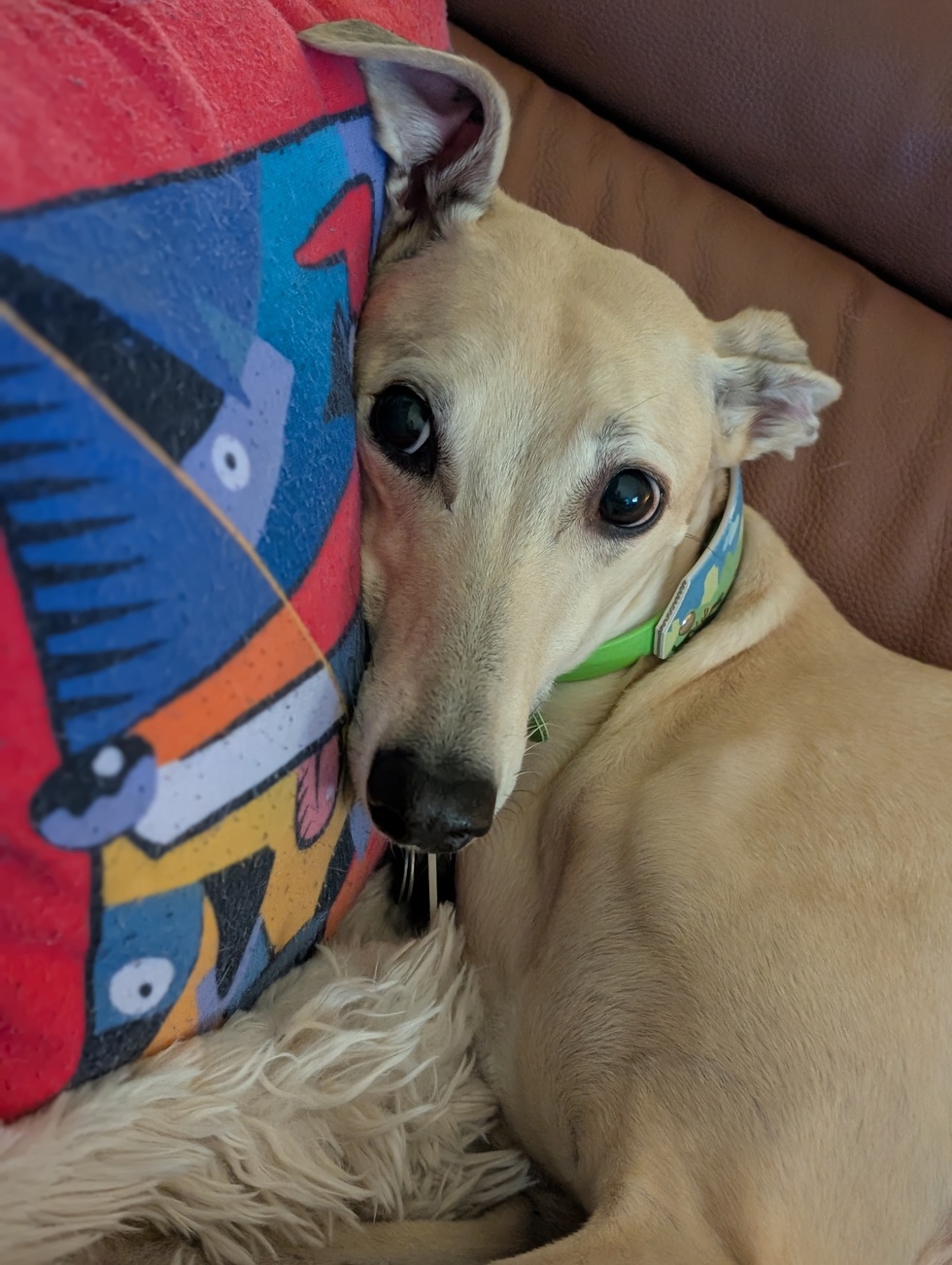 Fiadh is the sweetest girl, and she's obviously adorable! She was bred for racing in Ireland and grew up in a castle, but decided she wanted to live the princess life instead of racing. She now lives in Toronto and is an 8-time blood donor!