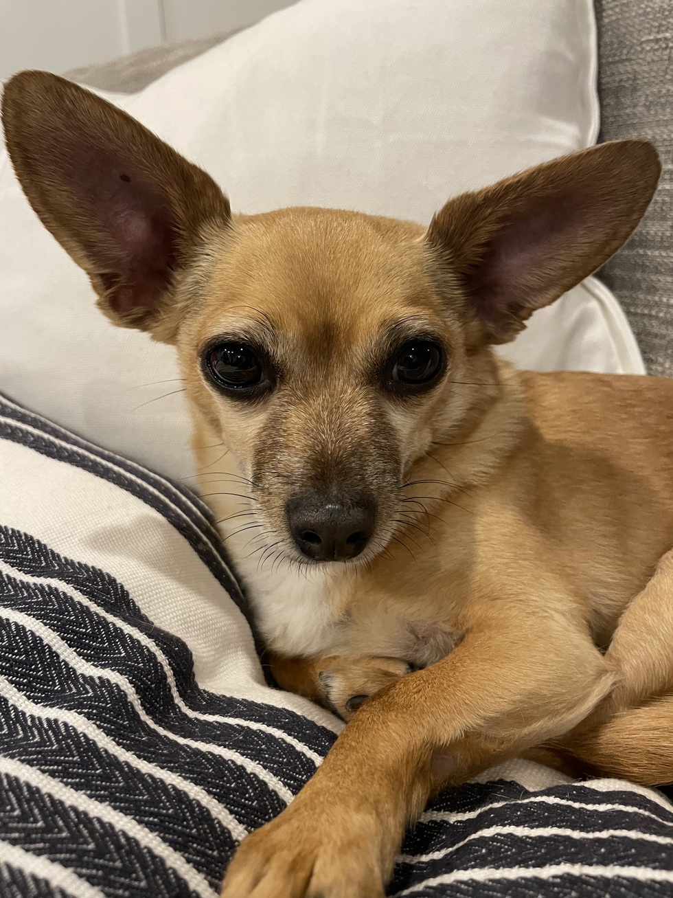 She is a rescue who had a tough start in life before joining our family. From the moment we met her, she claimed our hearts hugging my wife instantly and snuggling anyone lucky enough to sit on our couch. Her floppy ears, bright eyes, and curly wagging tail make it impossible not to fall in love with her. She’s brave, playful, and endlessly affectionate, bringing joy to everyone she meets. Whether asking for treats, curling up for a nap, or giving the best cuddles, she reminds us every day what unconditional love is.
