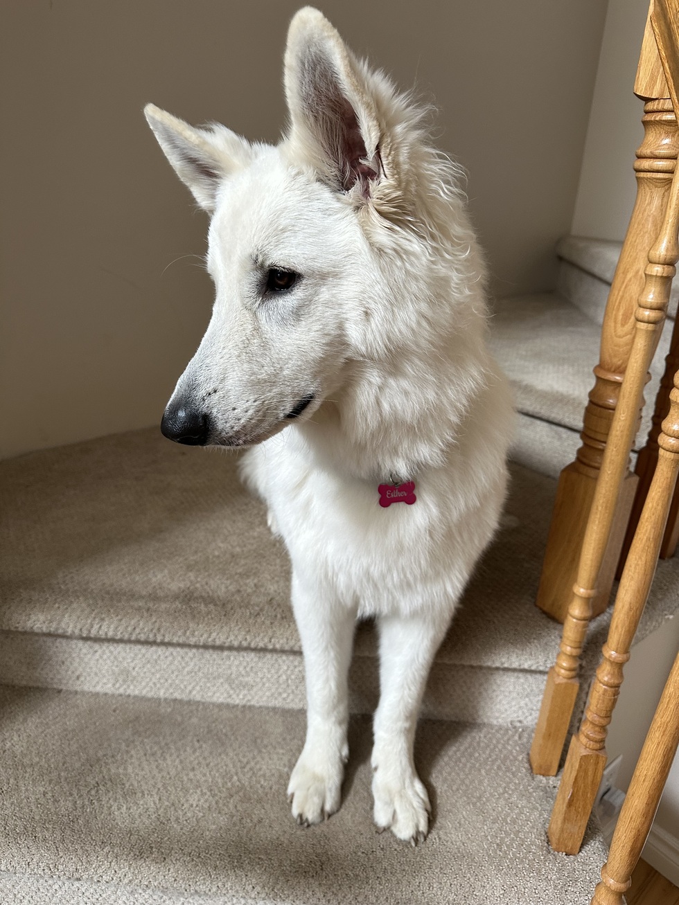 Esther is a White Swiss Shepherd who is super silly and full of love. And I know she would love to be on a beer can.