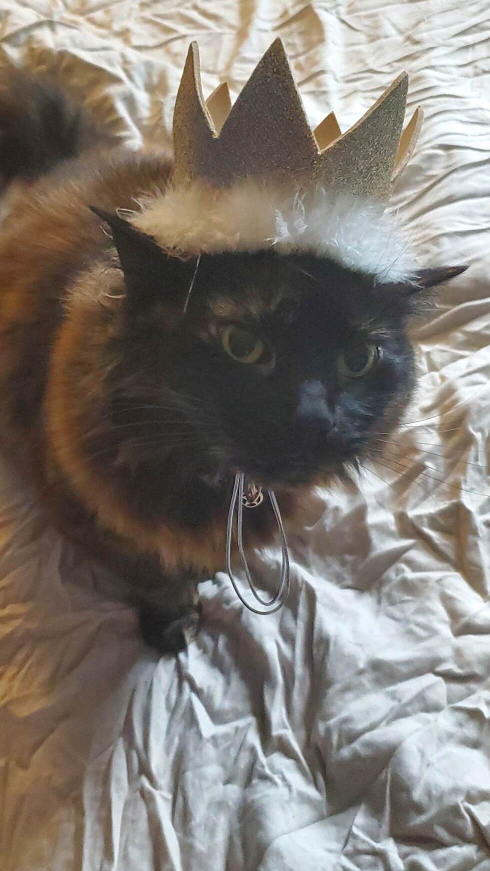 Shadow was the sweetest, silliest cat, and she loved to dress up - this photo was taken a few years ago on her 12th birthday! We very suddenly lost Shadow in January, and we're absolutely devastated. It would mean the world to us if everyone got to see how beautiful she was. I know everyone says it about their pet, but Shadow really was special. She stayed by my partner's side while she recovered from breaking her back in a car accident, and she watched over me when I had a concussion from my own MVA. When we moved into a new home she took it upon herself to find the corner with the best acoustics, and proceesed scream her little heart out so everybody knew about it. Shadow was my soulcat, and I miss her every day. Help us solidify her legacy as the queen she is. 💕