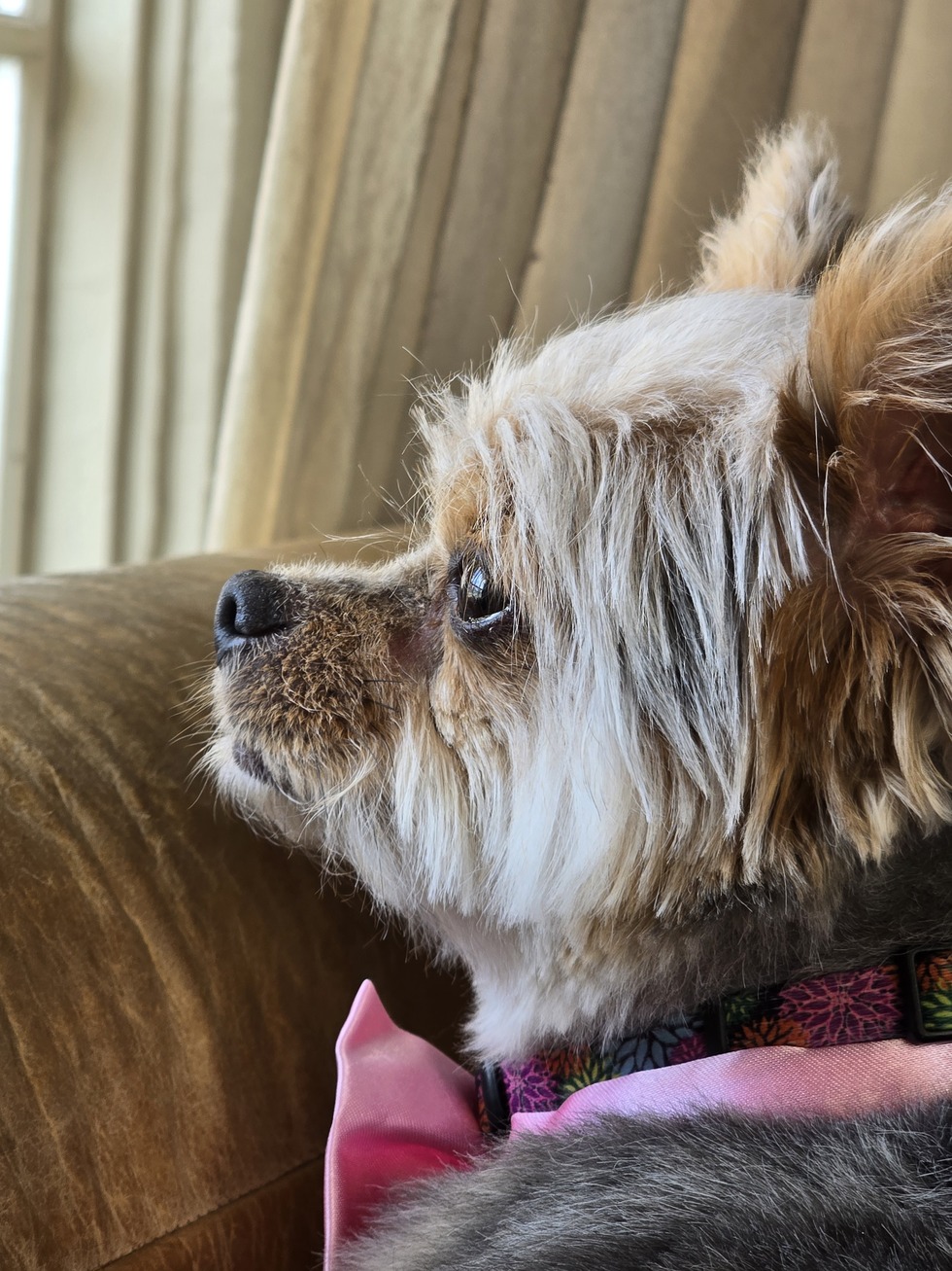 She is the most loving little lap fur baby. She doesn't leave my side and follows me everywhere. She is approximately years old and weighs 5.5 lbs.