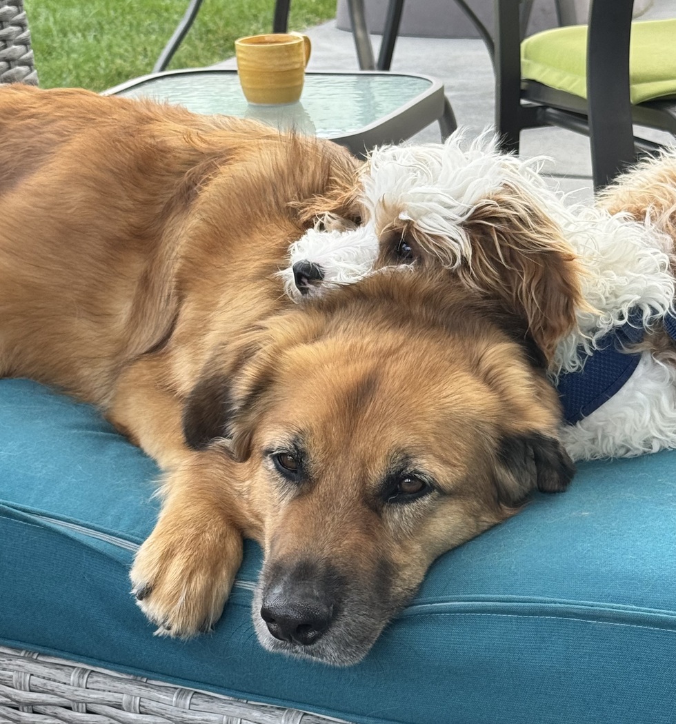 Esker and Matise are two dogs who love to run and walk in the Okanagan sunshine. They are soul mates who adore each other. One is big the other is small, but they are besties!