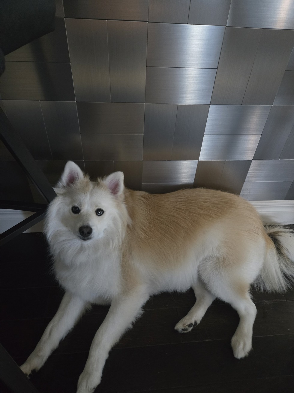 She is sweetheart! Always happy and loves to socialize with everyone! She is a soft fluffy beauty and doesn't even bark, she likes to gently pat my feet with her paws to get treats, She likes food!