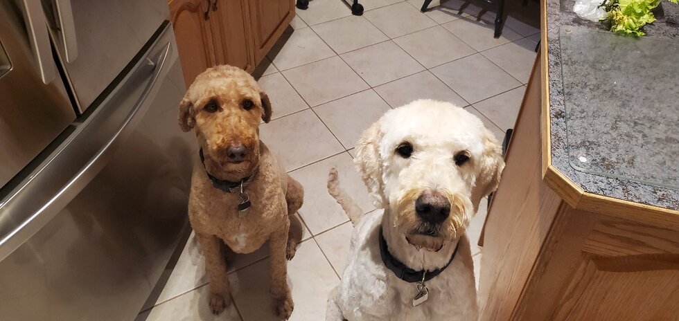 Ollie is an Aussiedoodle, Griffin is a Goldendoodle.. both are WackA Doodles.