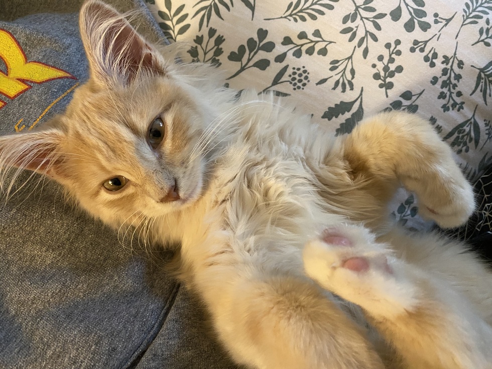 kevin is a silly little orange ragdoll maine coon mix. he is a crazy cat but he’s so cuddly and cute too. he brings me and my family joy in our lives every single day and we hope to share that with others.