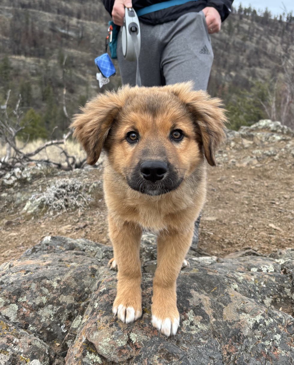 Moose is a rescue mutt who entered foster care at 7 days old when his mom was killed by a cougar. After being lovingly bottle fed and cared for by his wonderful foster family, we got to adopt Moose and he instantly filled our house with excitement and joy! He loves trail hikes, outdoor naps, and playing with his family. We love our Moose Goose boy!