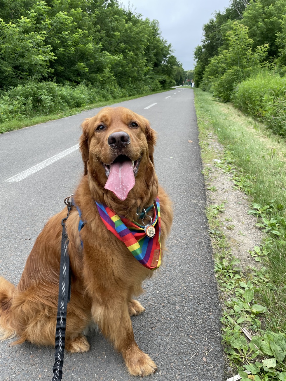 Rue is a fun loving, intelligent, and happy pup. A 6.5 year old golden retriever with a heart of gold! Catch her trying to keep up with trail runners, begging for your food, or barking at the mail person.