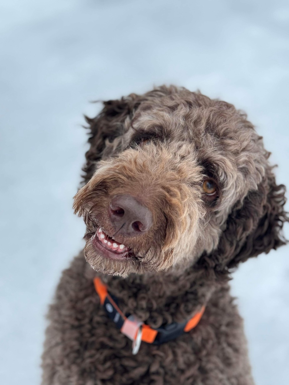 Meet Queso: a 70lb dark-chocolate, curly-haired gentleman with suspiciously human eyes and the tiniest little front teef you’ve ever seen.