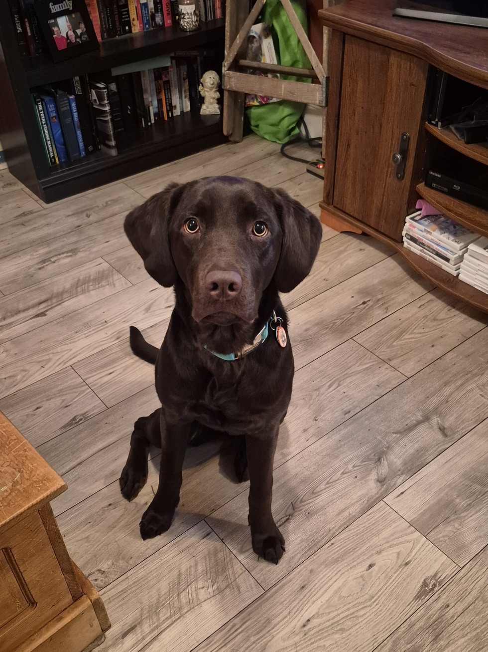 She is a a young fun loving chocolate lab. She loves her cuddles and enjoys playing outside with her big sister Sadie. She has lots of energy and lovd that will make anyone's day so much better.