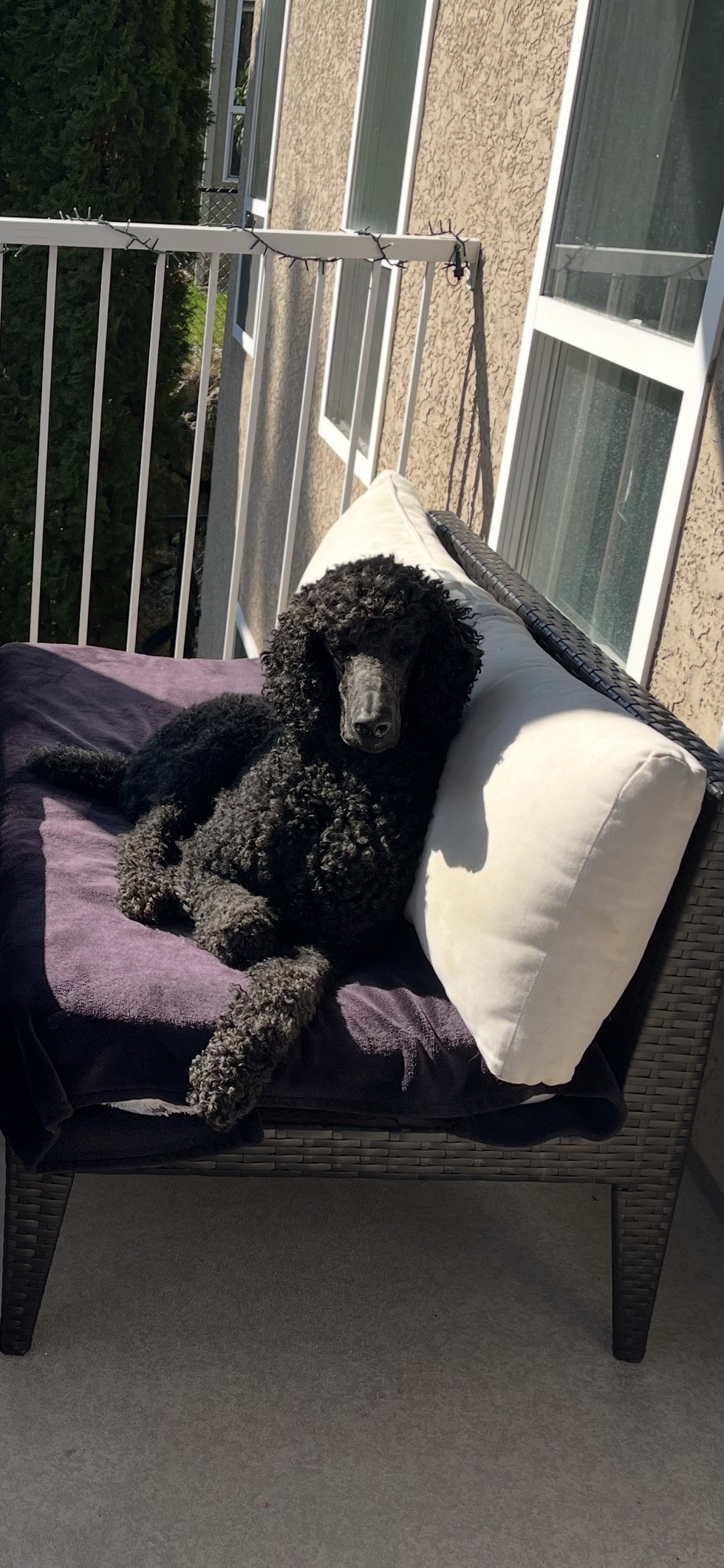Meet Leo! 🐩☀️ This handsome Standard Poodle is a true connoisseur of good vibes and sunny afternoons. He might not be able to sip a cold one himself, but he definitely knows how to bring the patio party. Cheers!