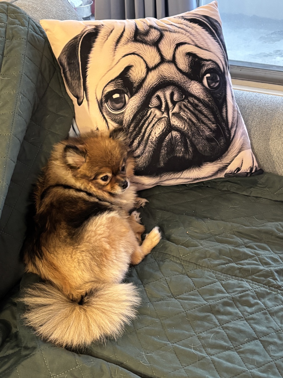 Chichi loves to make people laugh and smile as past by her. She love watch her favourite animal shows and pet commercials. Every night she finds her favourite place on the couch next to pug pillow waiting patiently for the shows. Her love has spread around the neighborhood if she could just get one person to smile as she walks by them she is excited for the day. Chichi is tiny with a huge personality.