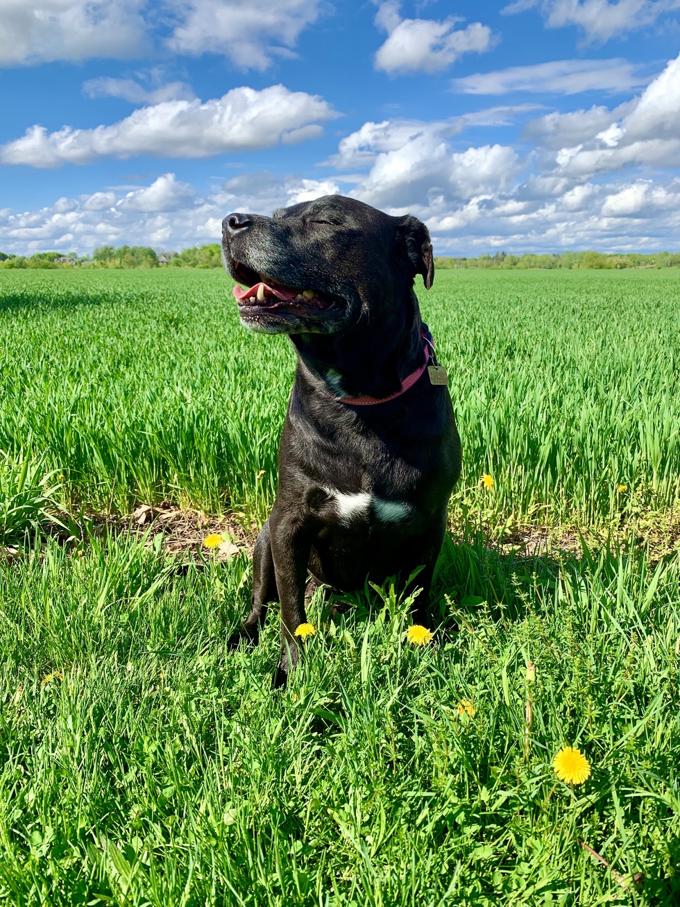 Why everyone should vote for my animalSkye was a rescue. She is a big ham and full of love and spunk. Usually more than her aging body enjoys to be. She makes faces. She farts way too much. She steals the couch and then gets mad she can't have your spot too. She lays on her back and just looks at you smiling. She doesn't listen, doesn't come when asked and hates the old man who walks by in a trench coat.