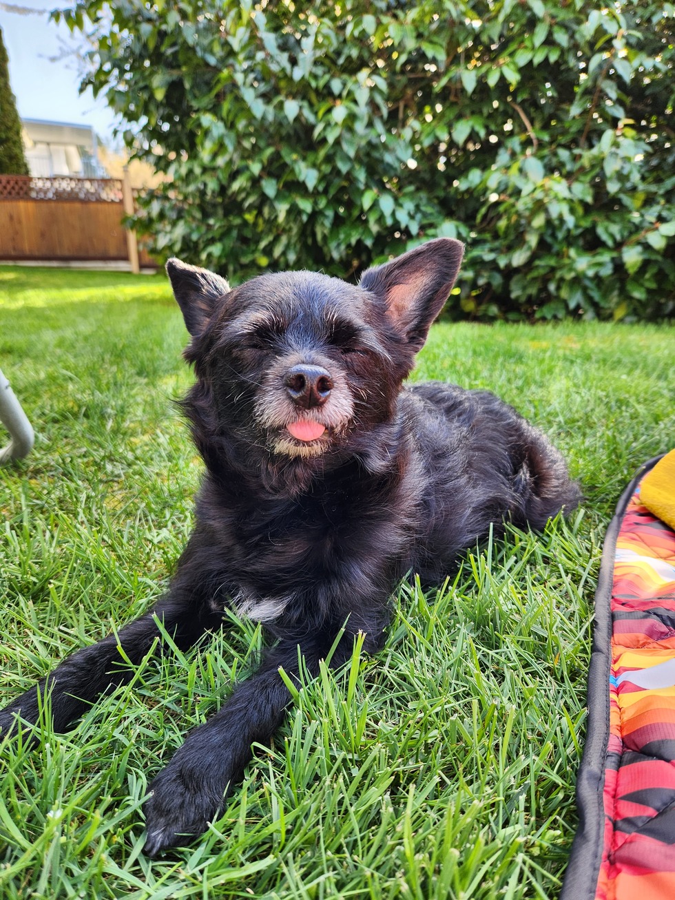 Pippi is a senior rescue who loves chilling in nature and catching some rays, a perfect pairing for your ice cold beverage!