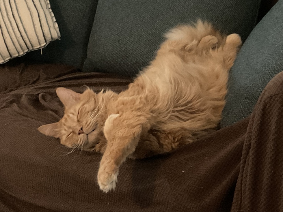 Reilly is also a therapy cat so his days and nights can be busy taking care of his Mom. It can be tiring work, but he doesn’t mind and he knows how to lay back n chill!!